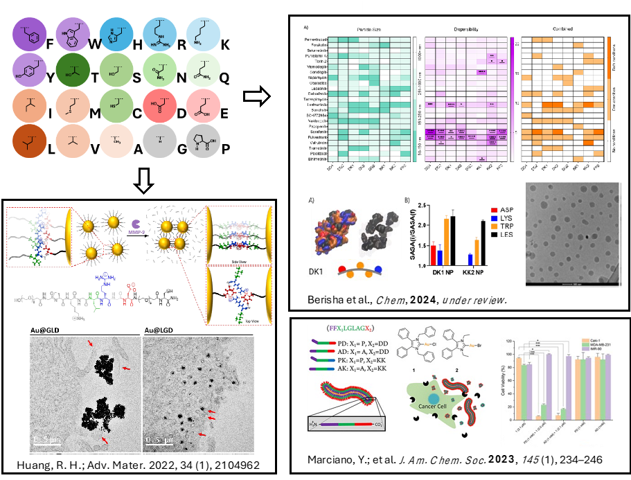Computational methods provide a powerful resource for mechanistic study and informed design of new peptides. We seamlessly integrate experimentation and computation such as molecular modeling, machine learning, and simulations to design and predict peptide behavior for new functional material design.